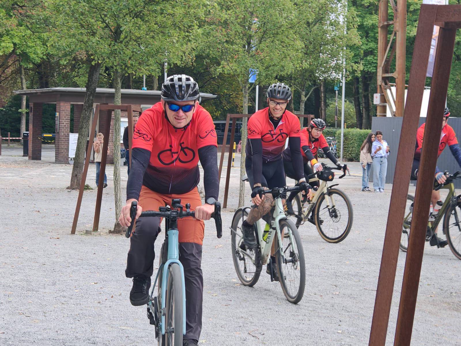 Aus Krankheitsgründen wurden aus den neun leider nur fünf Radler, die am letzten September-Samstag bei idealem Herbstwetter 71 Kilometer lang kräftig in die Retter-Pedale traten. Beflügelt von ihrer guten Tat, absolvierten sie in bester Laune den geplanten Rundkurs. Am Zielpunkt im Landschaftspark hatten sich die Vorstandsvorsitzende des Bunten Kreises Dr. Gabriele Weber, drei weitere Mitarbeiterinnen mit Familien und Freunden versammelt, um das Engagement der sportlichen Radler gebührend zu würdigen. Die Fahrer empfingen begeisterter Applaus und zahlreiche Leckereien zur Stärkung. „Es hat uns allen sehr viel Spaß gemacht, uns für die Arbeit des Bunten Kreises einzusetzen“, sagte Initiator Michael Rodehüser, „wir sind stolz, dass wir mit unserer Aktion über 1000 Euro sammeln konnten. Wir danken allen Spendern und freuen uns schon darauf, unseren Einsatz nächstes Jahr zu wiederholen.“